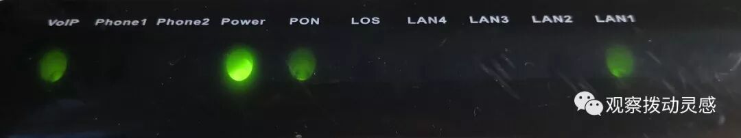 PON /LOS:光纤传输状态,正常情况时,PON常亮,LOS熄灭;如果PON熄灭,LOS红灯常亮,则光纤信号输入不正常,必须请运营商上门维修;